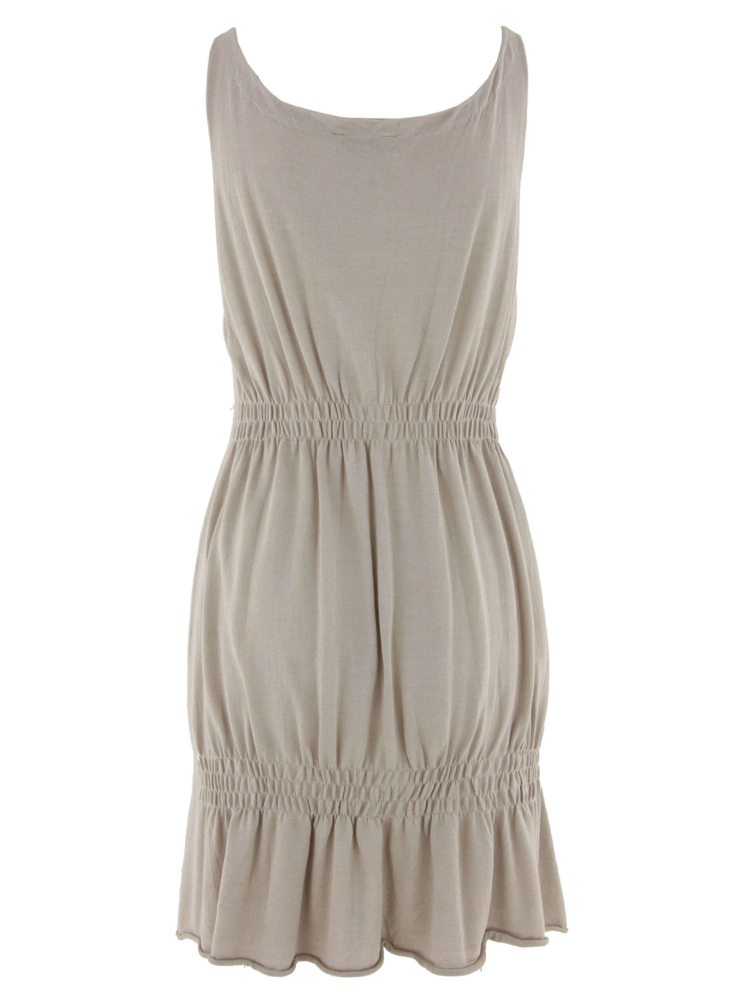Een tuniek van 0039 in een zandkleur. In de taille en aan de onderkant is een 3 dubbele decoratieve stiknaad waartussen de stof fijn geplooid is. Het tuniek heeft een diepe V – Hals en mag op de hand worden gewassen.