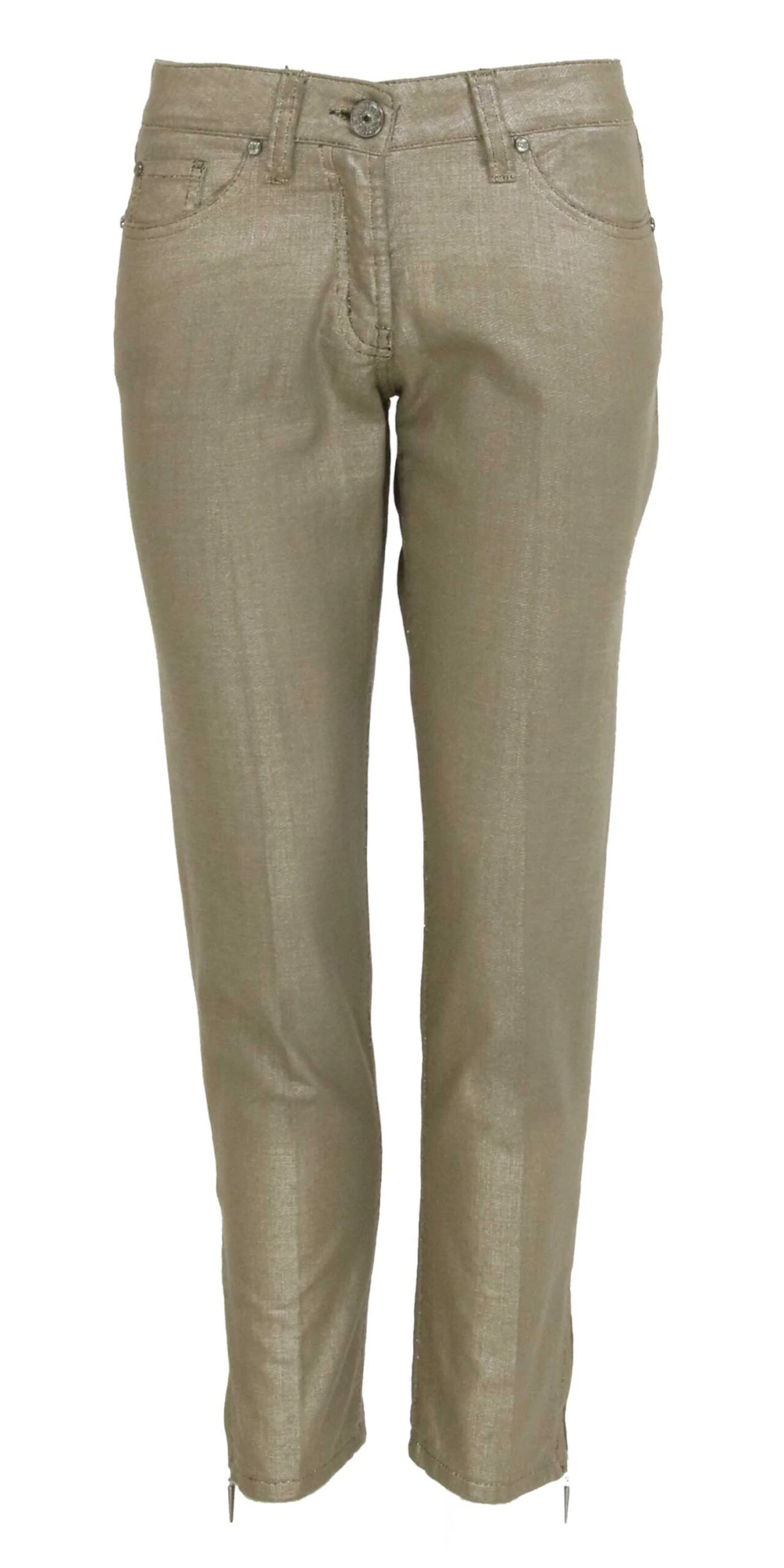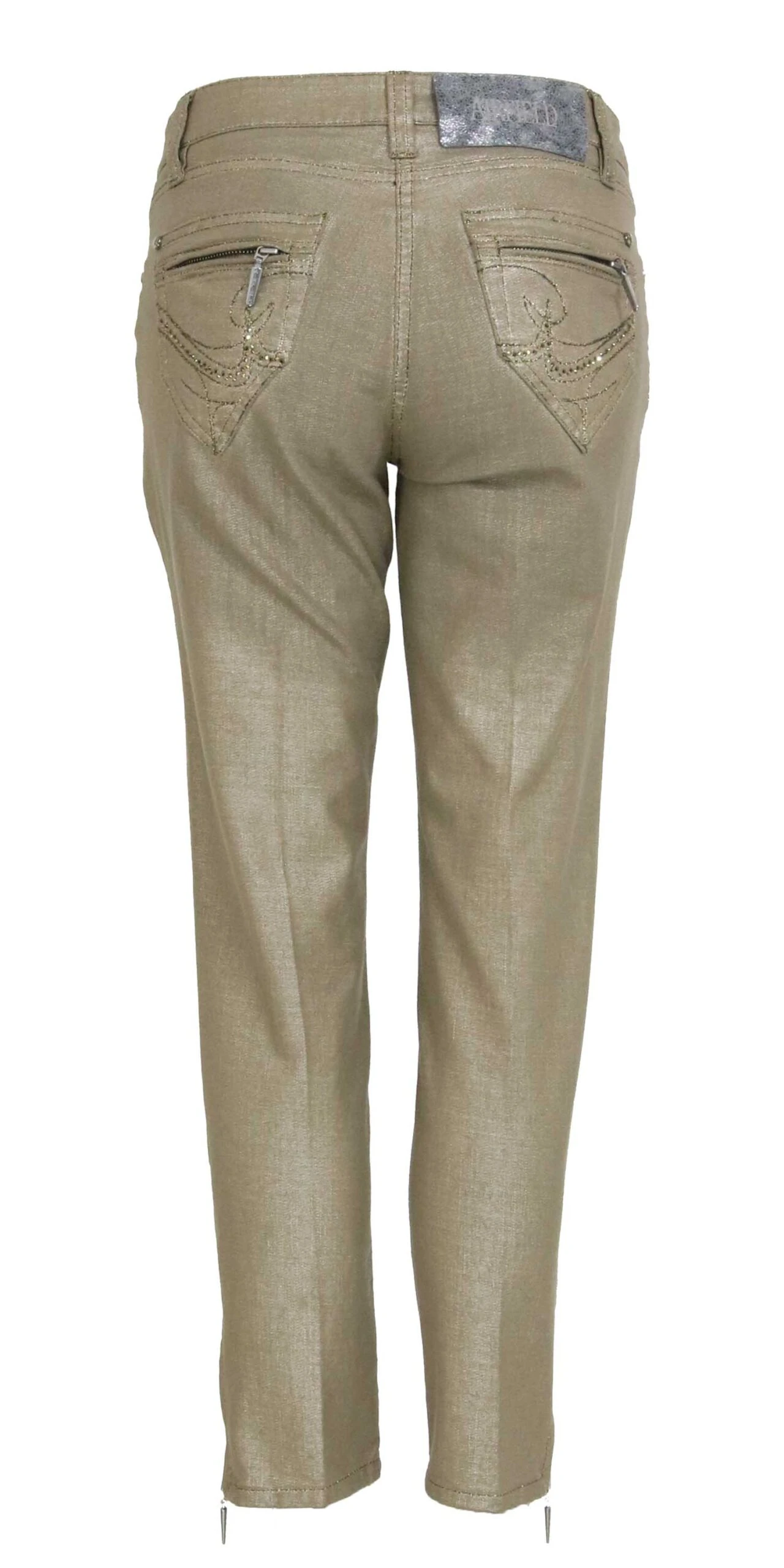 Een jeans van Airfield in de kleur goud. De jeans is in een 5 pocket model en mag op 30 graden worden gewassen.
