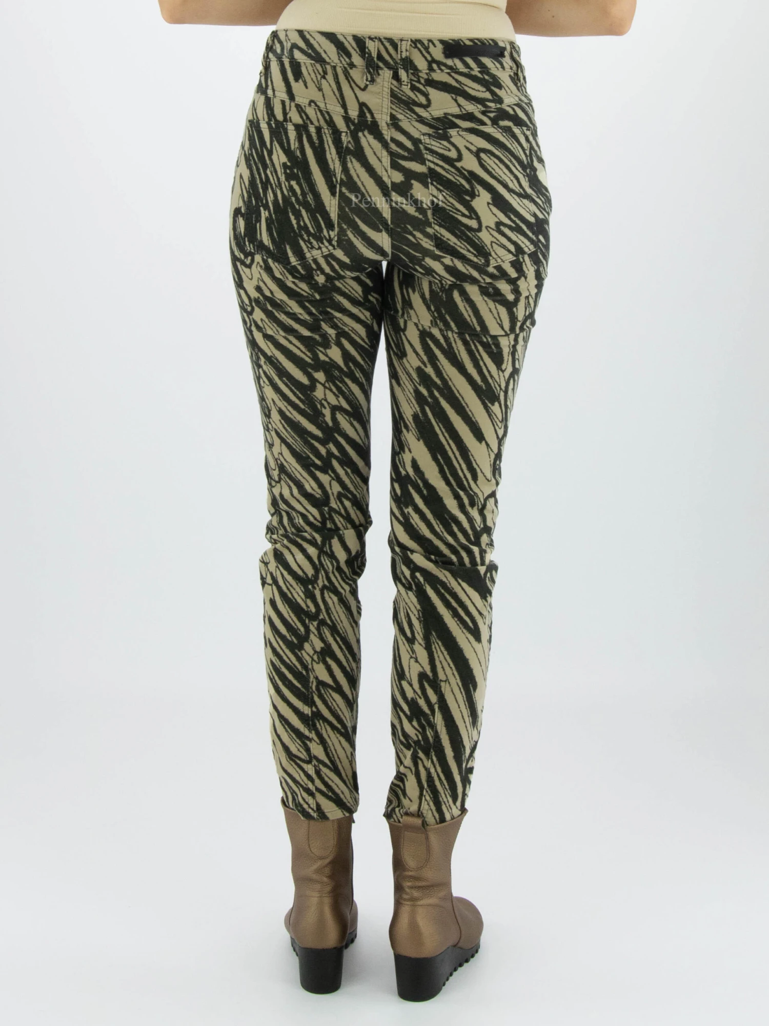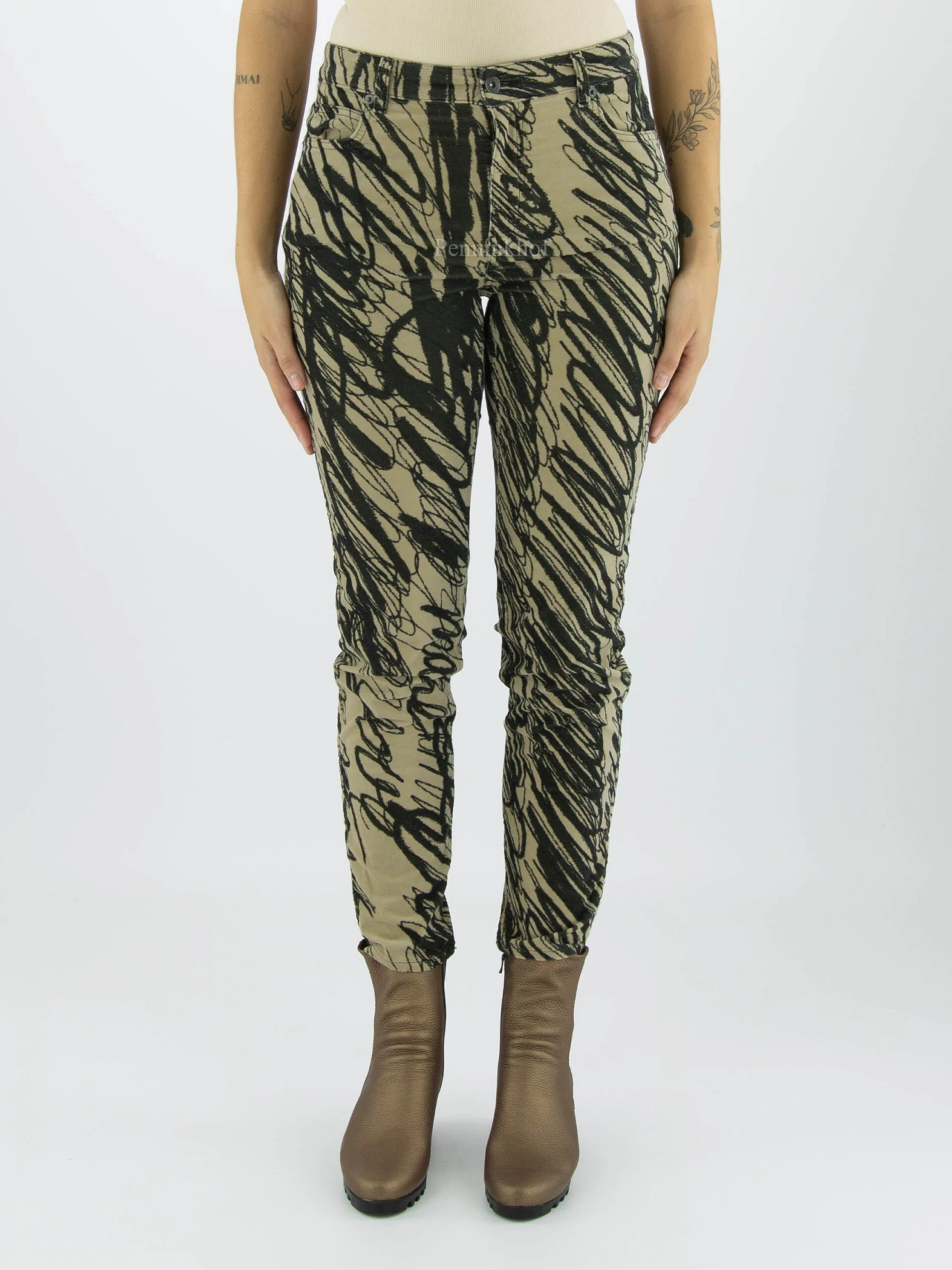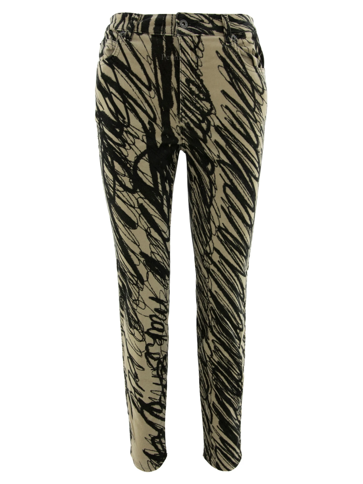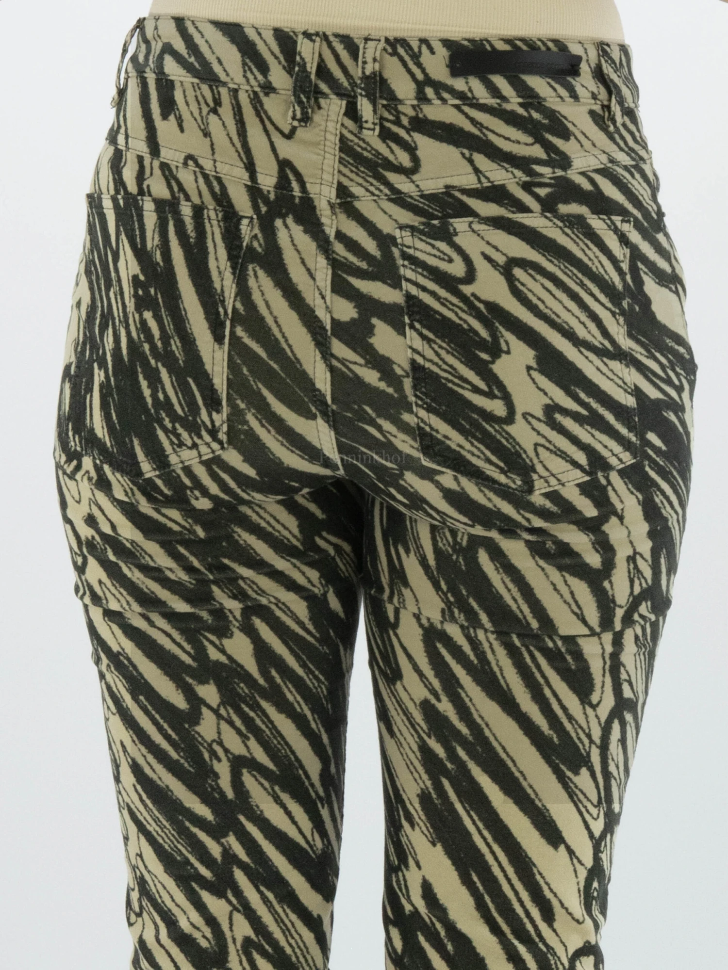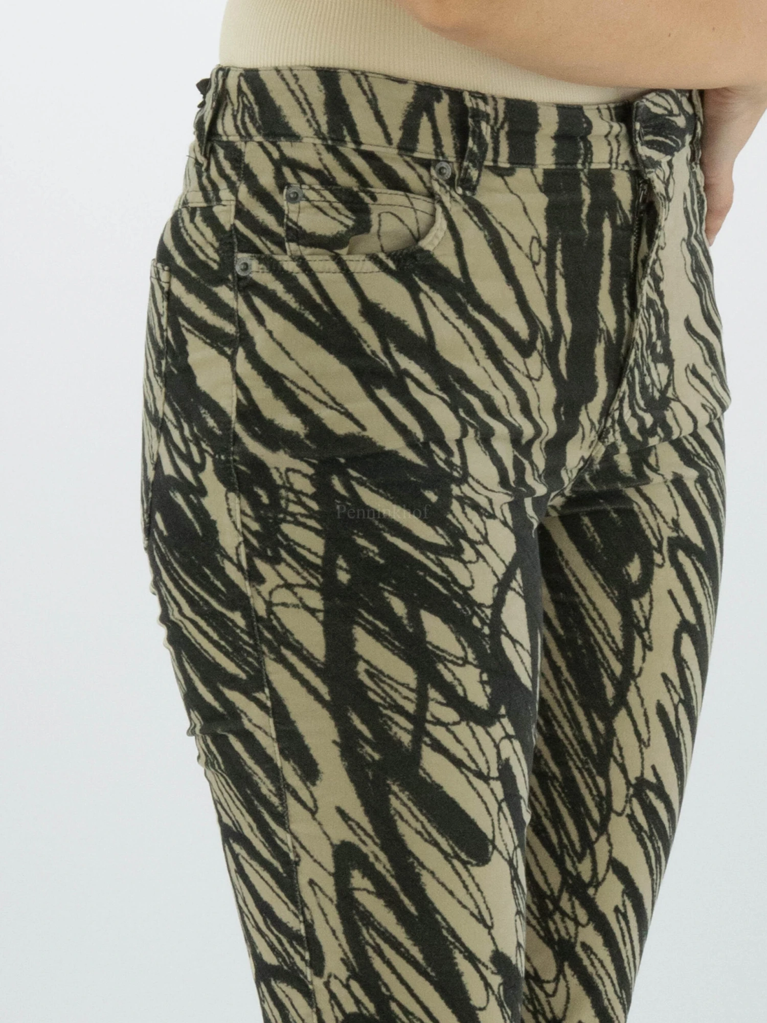 Een broek van Annette Görtz in een print met de kleuren zand en zwart. De broek is in een 5 pocket model en mag op 30 graden worden gewassen.