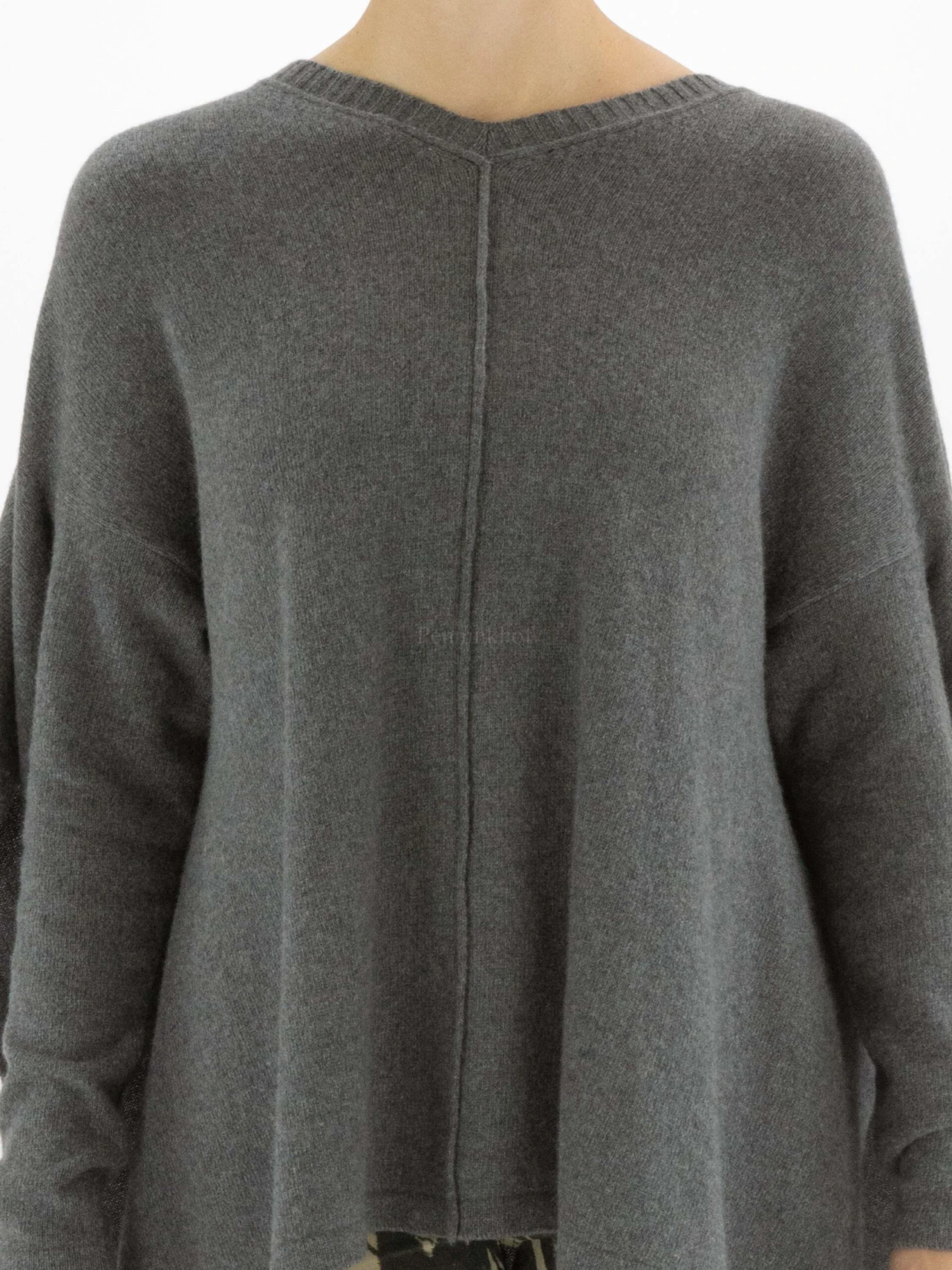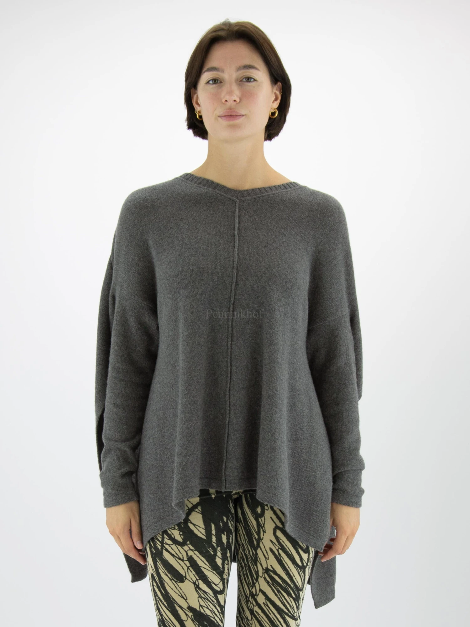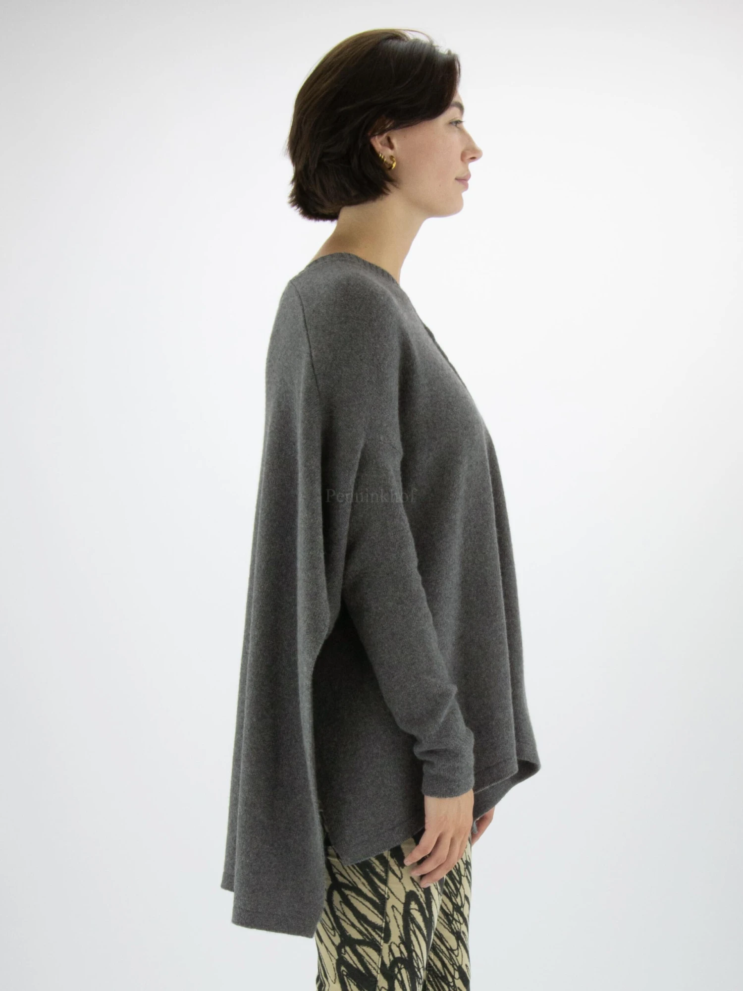 Een poncho van Annette Görtz in de kleur grijs. De poncho heeft een V – Hals en aan beide zijkanten is ene diepe split tot onder de oksel. Deze poncho mag op de hand worden gewassen.