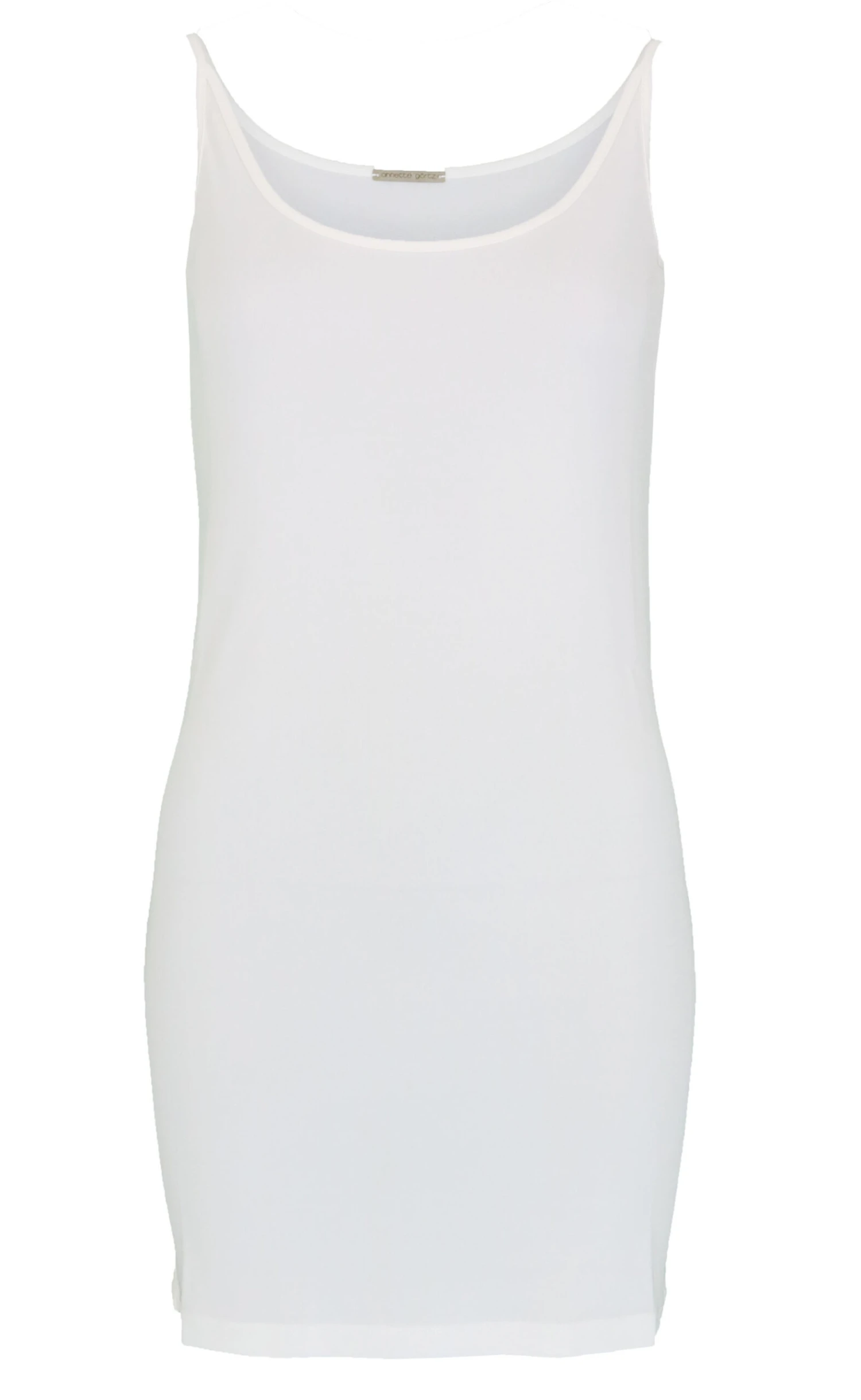 Een lange top van Annette Görtz in de kleur roomwit. De top heeft een ronde hals en spaghetti schouderbandjes. Deze top mag op 30 graden worden gewassen.