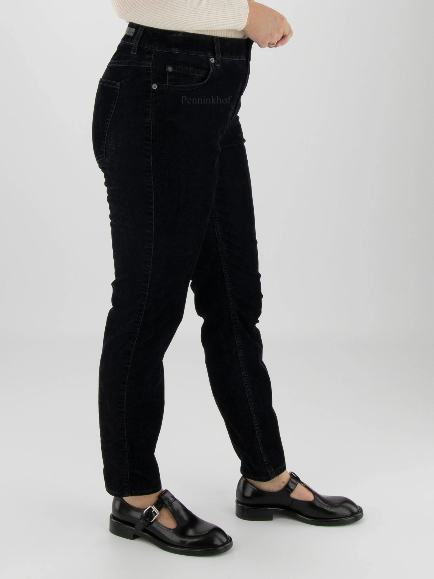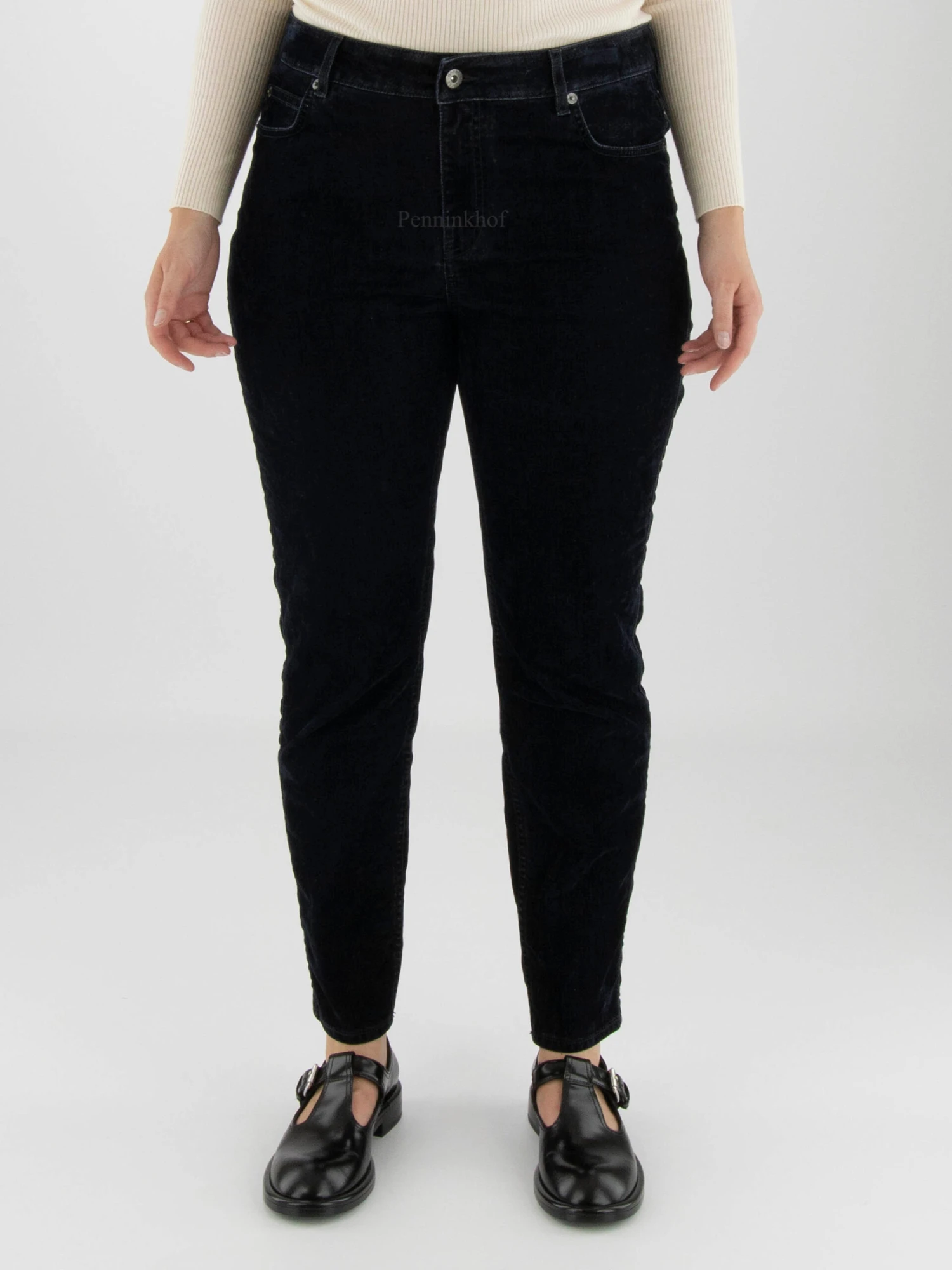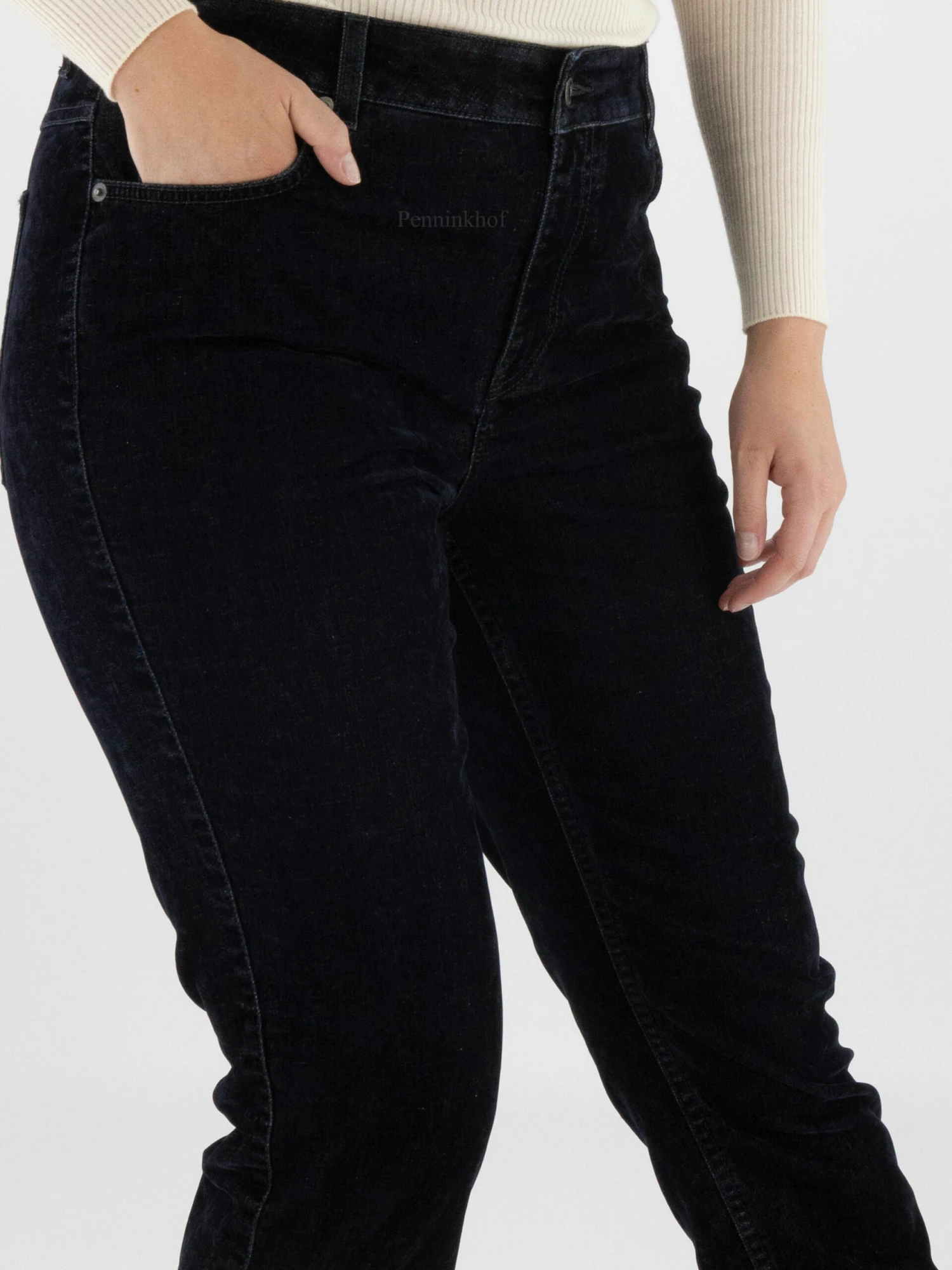 Een velours jeans van Annette Görtz in een nachtblauwe kleur. De jeans is in een 5 pocket model en mag op 30 graden worden gewassen.