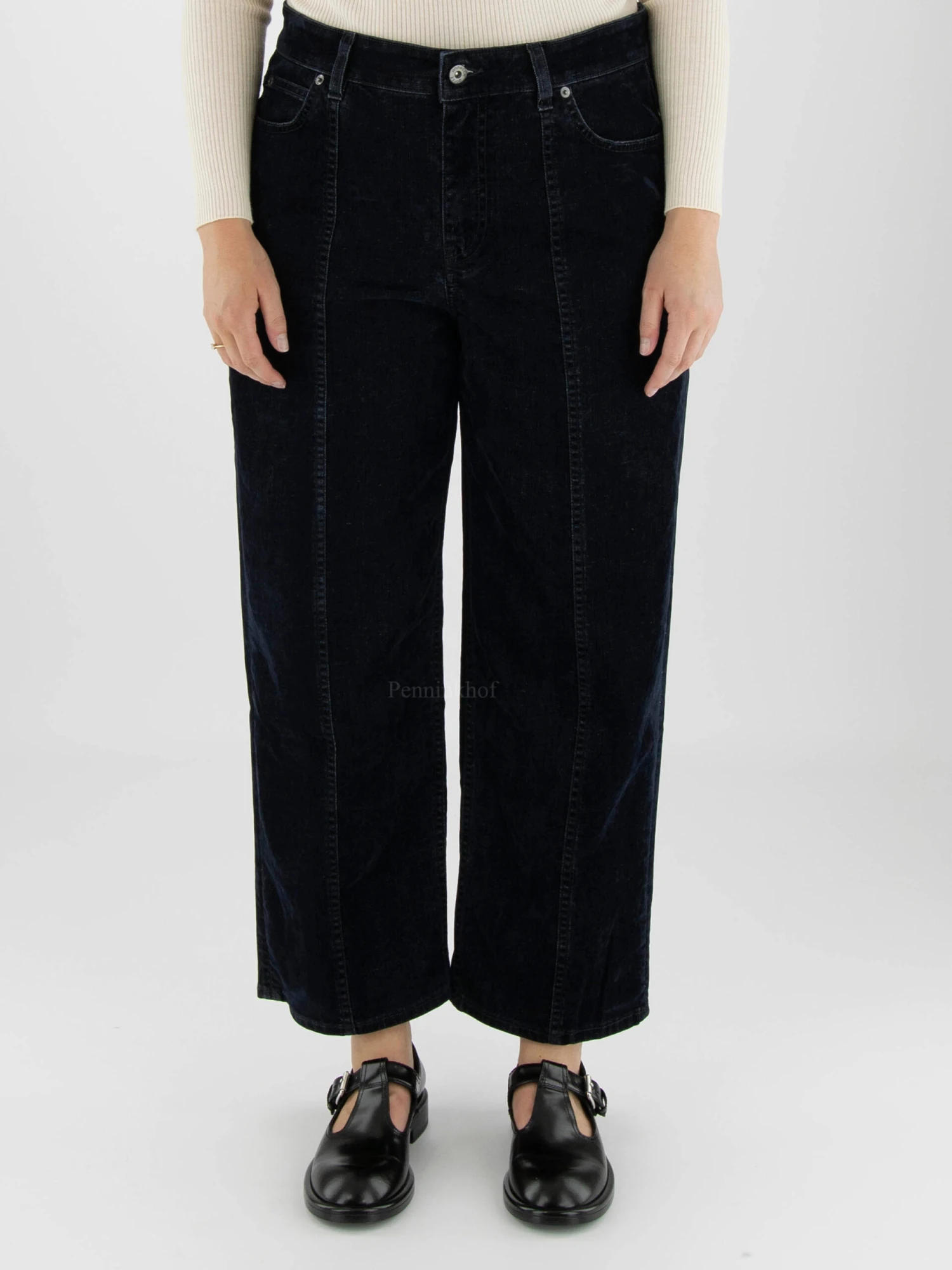 Een velour jeans van Annette Görtz in een nachtblauwe kleur. De jeans is in een 5 pocket model met recht gesneden pijpen. Deze jeans mag op 30 graden worden gewassen.