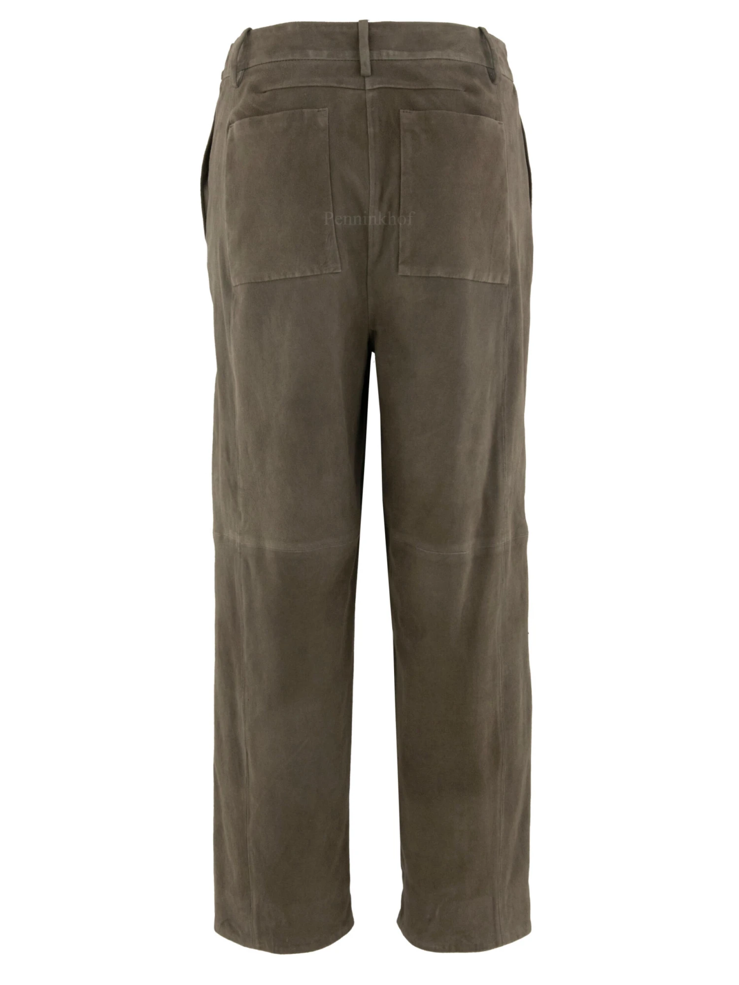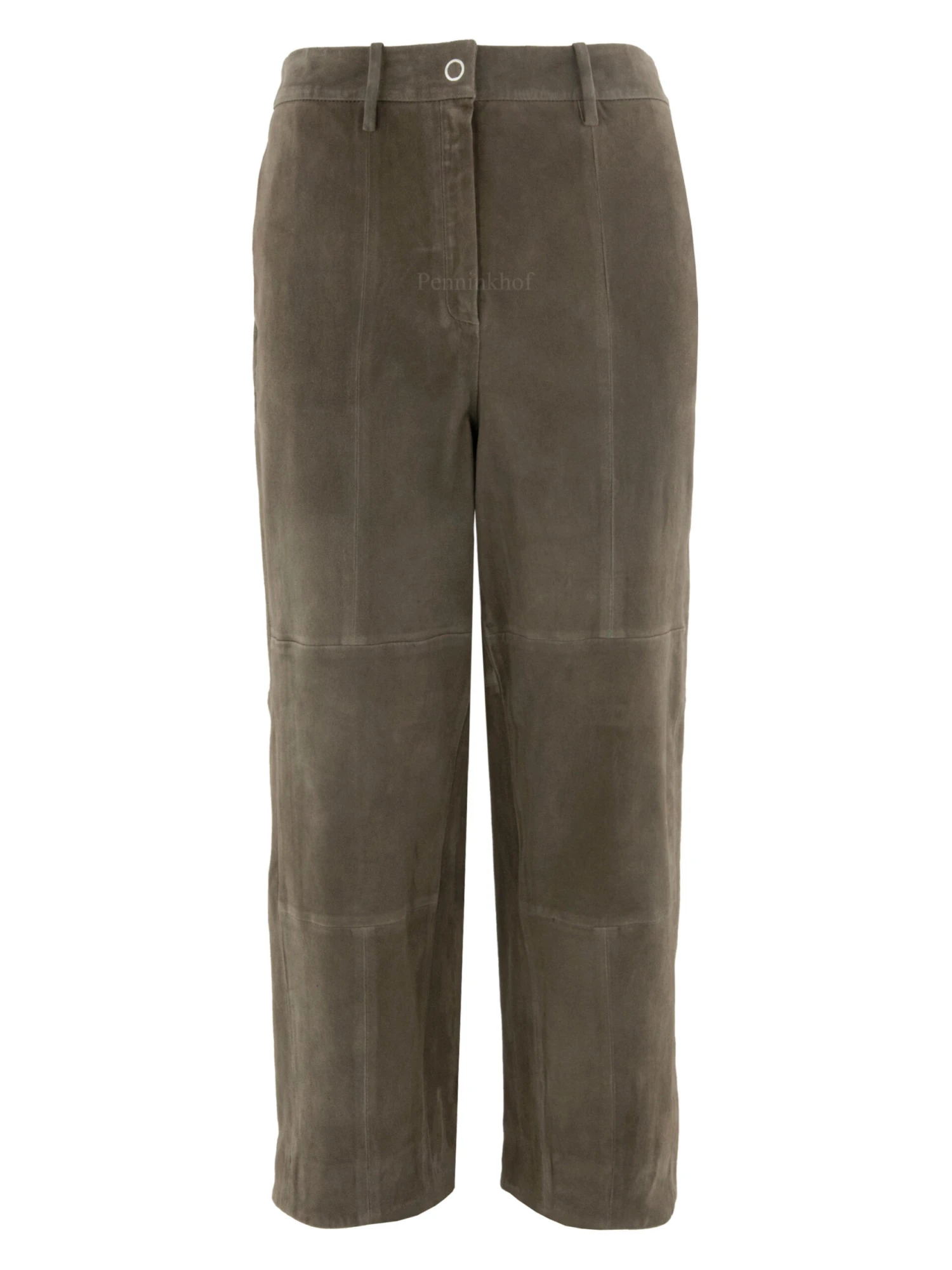 Een recht gesneden lederen broek van Annette Görtz in een taupe kleur. De broek heeft steekzakken. Deze broek mag niet worden gewassen.