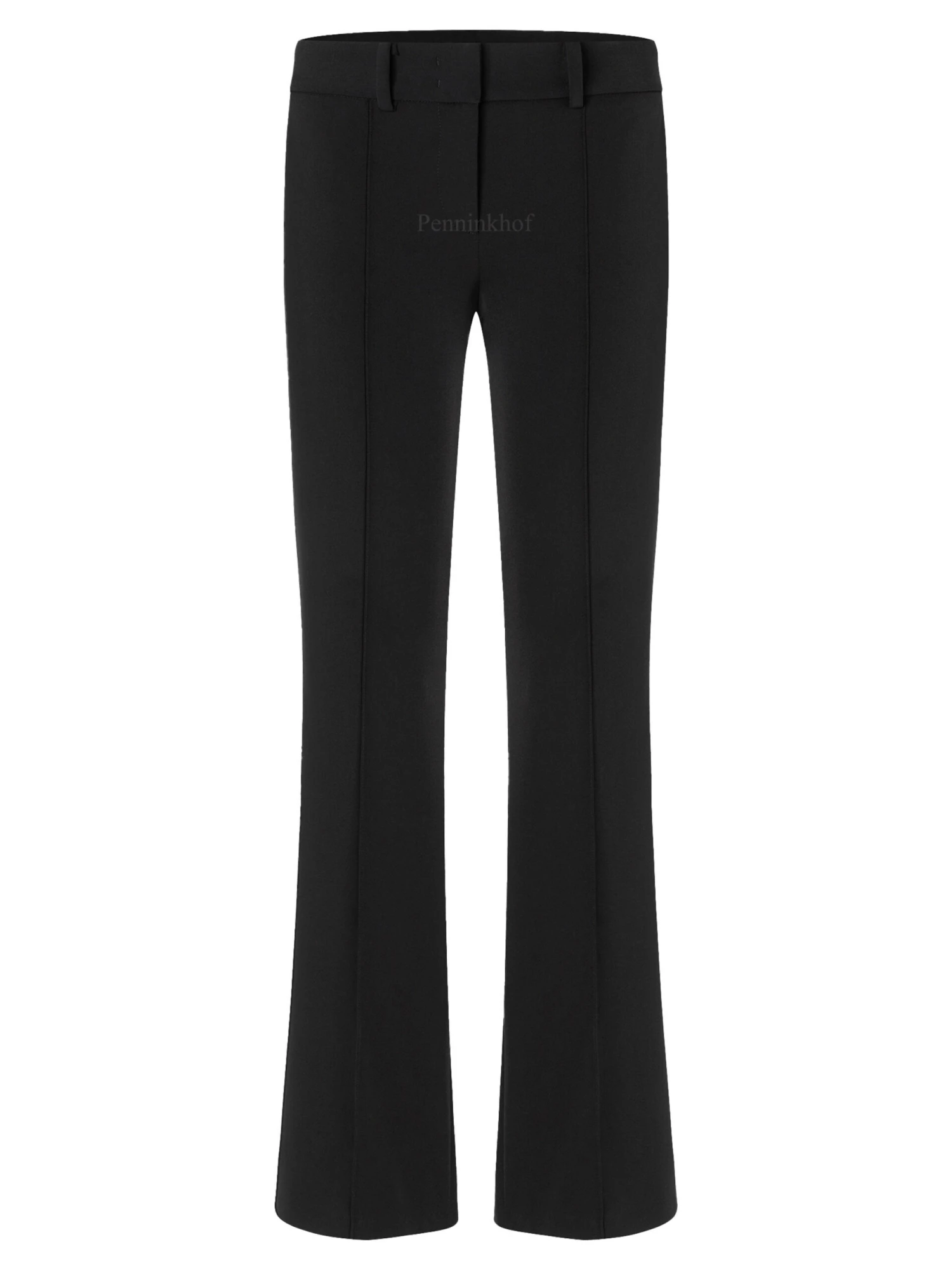 Een broek van Cambio in de kleur zwart. Langs de zijkanten is een bies met een decoratieve doorgestikte naad. In het midden van de pijpen is een stiknaad en de broek heeft steekzakken. Deze broek mag op 30 graden worden gewassen.
