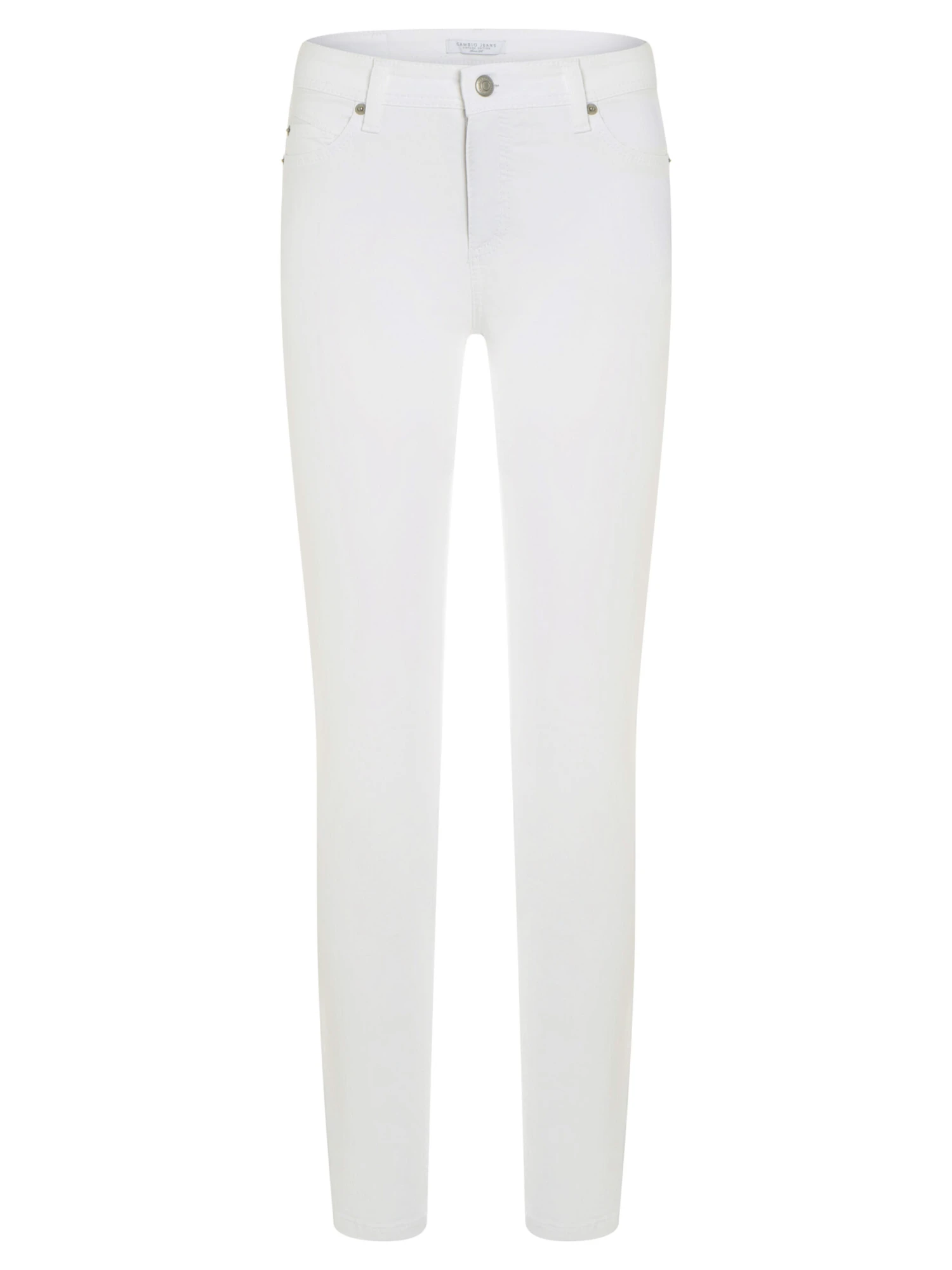 Een jeans van Cambio in de kleur wit. de jeans is in een 5 pocket model. Deze jeans mag op 30 graden worden gewassen.