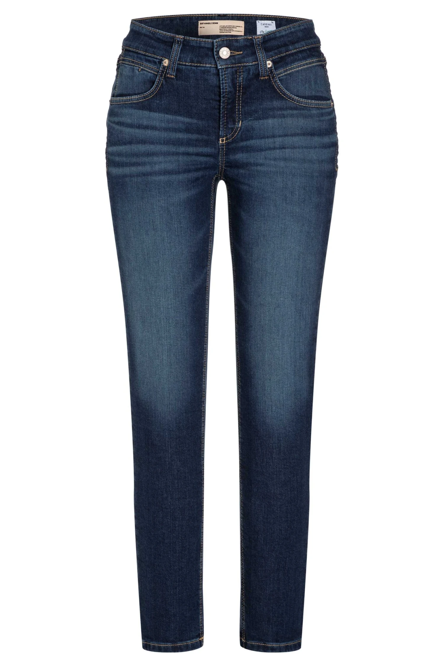 Een jeans van Cambio in een basis jeans kleur. De jeans is in een 5 pocket model en mag op 30 graden worden gewassen.