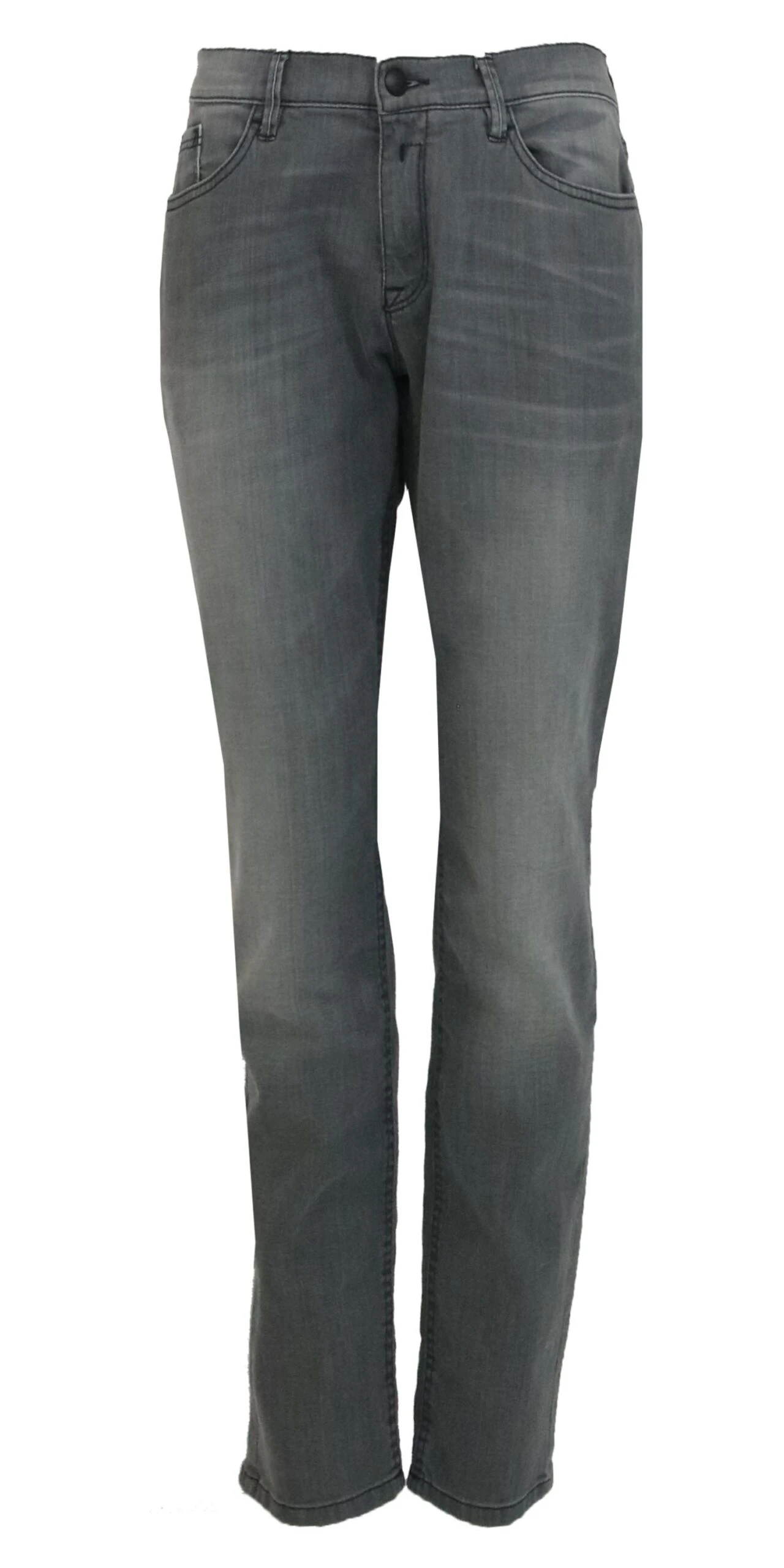 Een gewassen jeans van Deyk in een grijze kleur. De broek is in een 5 pocket model en mag op 30 graden worden gewassen.