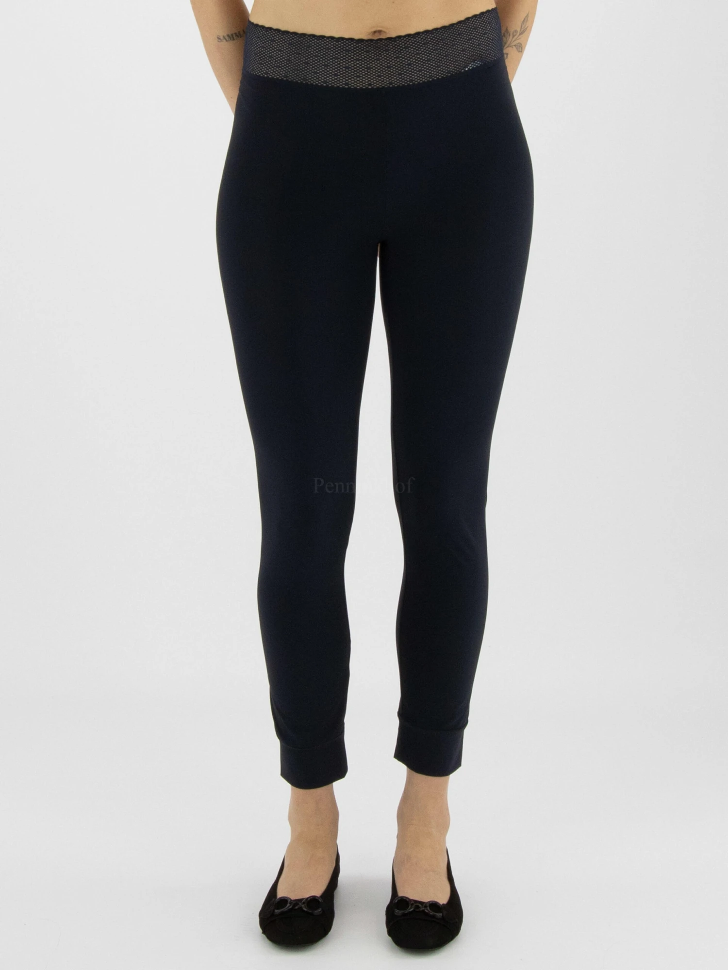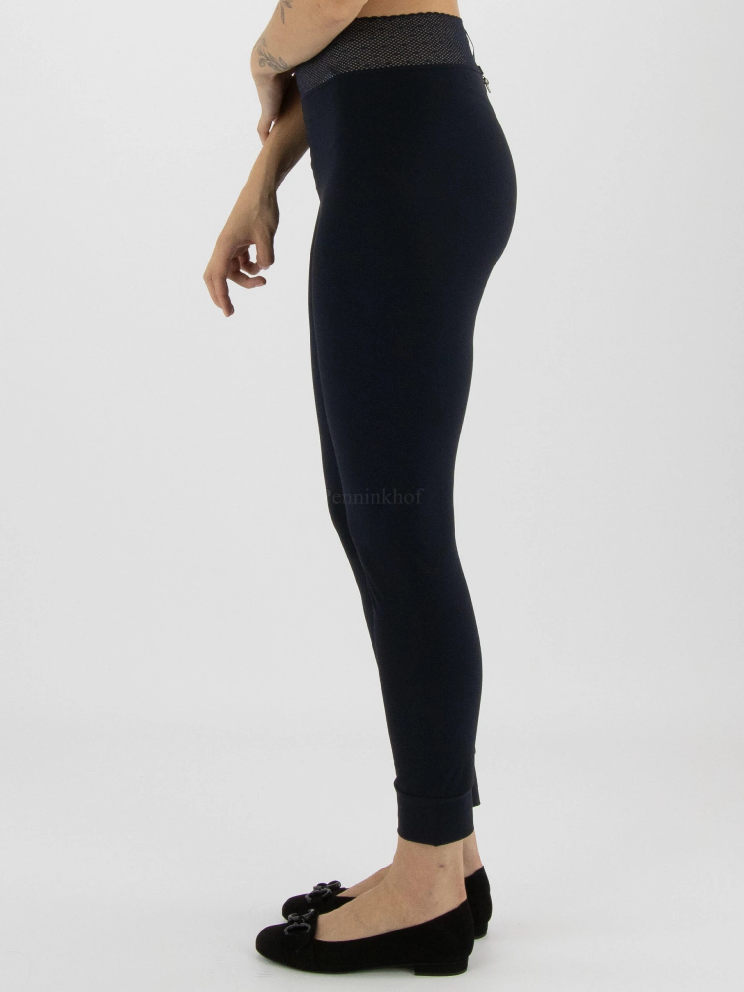 Een legging van High in de kleur marineblauw. In de taille is een brede elastieken band in een net structuur. Deze legging mag op 30 graden worden gewassen.