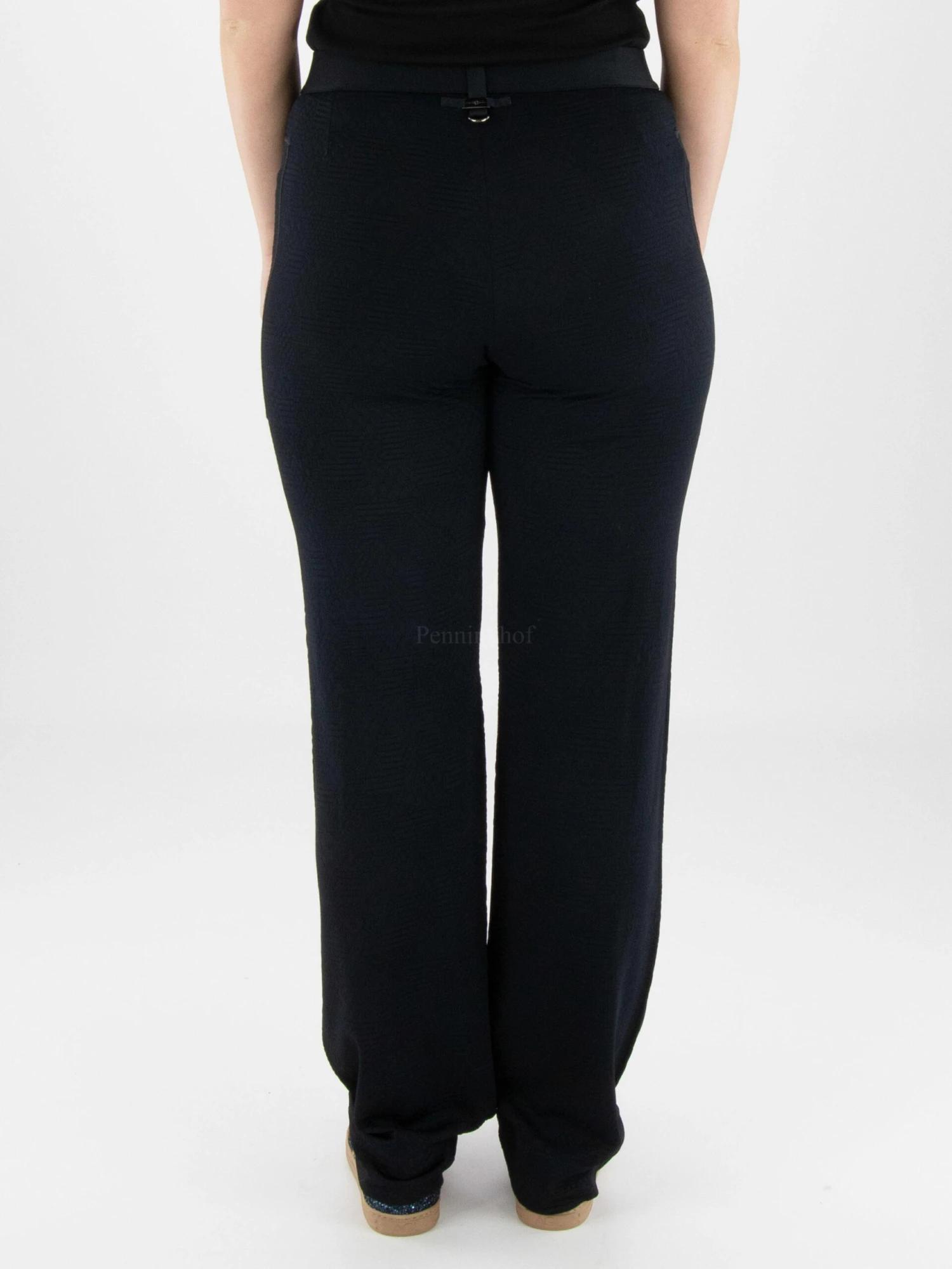Een luxe broek van High in een grafische reliëfprint. In de taille is een elastieken band. Deze broek mag op 30 graden worden gewassen.