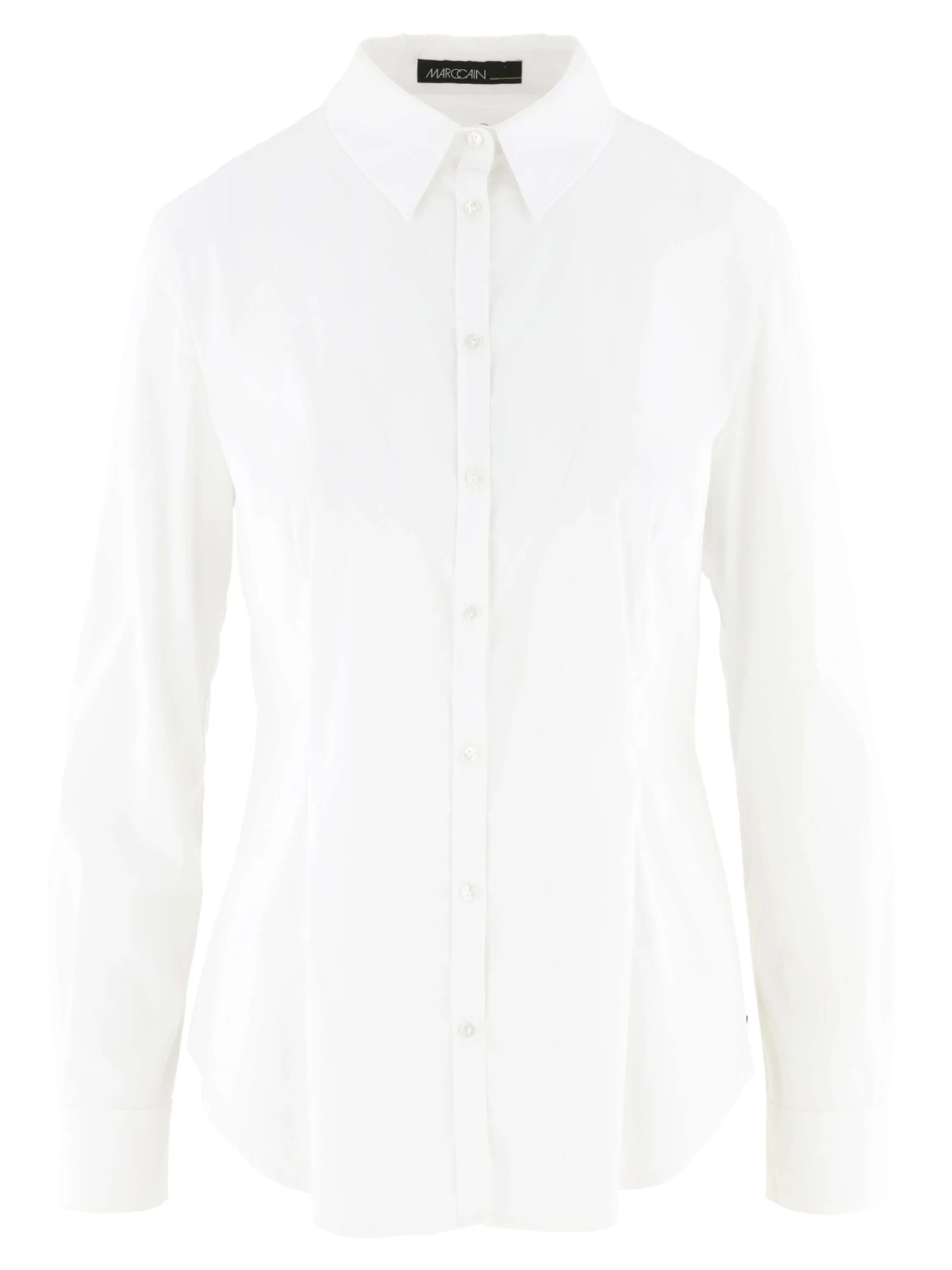 Een basis blouse van het merk Marc Cain in de kleur wit De blouse heeft brede manchetten van 8 cm lang. Deze blouse mag op 30 graden worden gewassen.