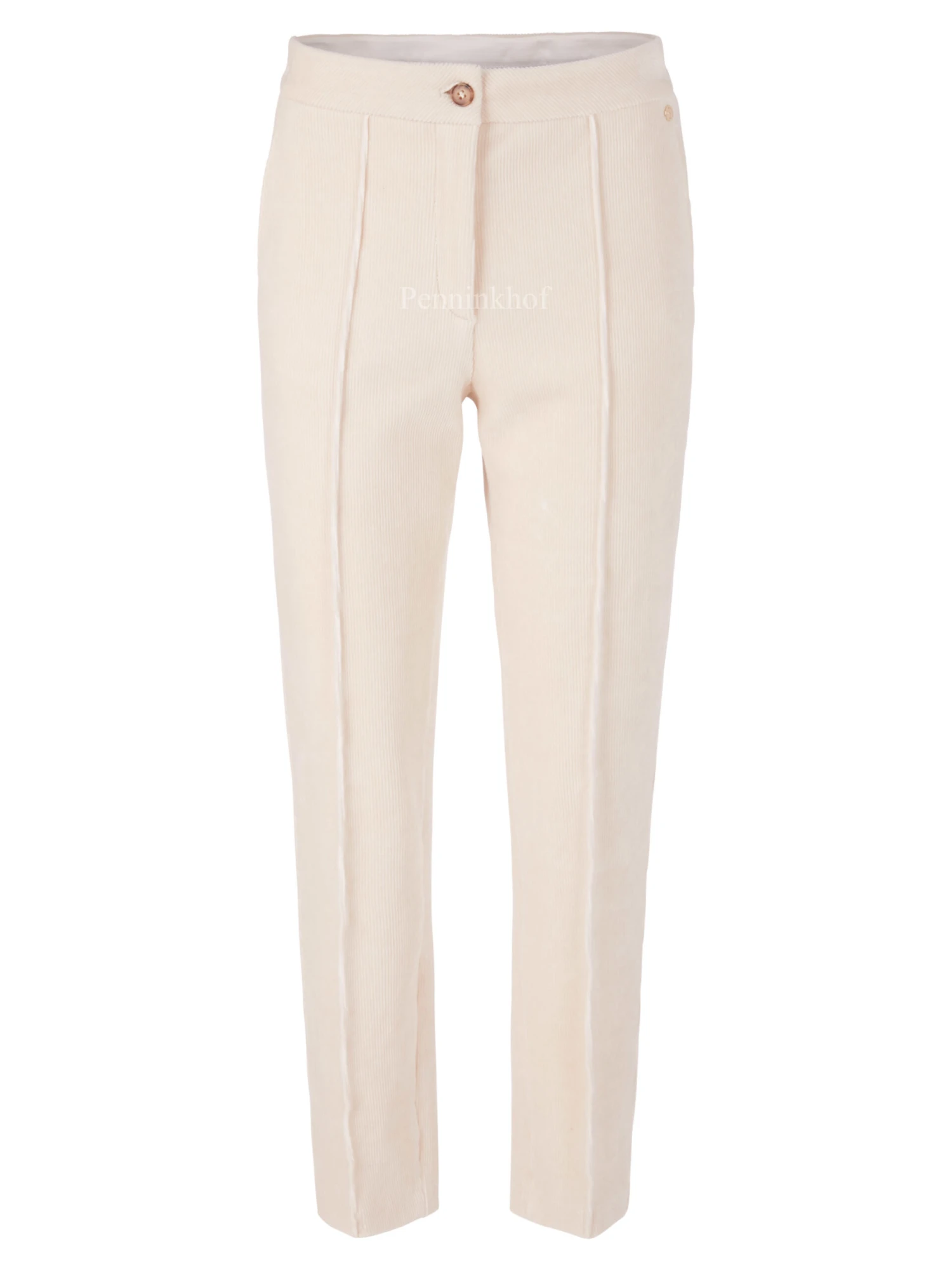 Een ribcord broek van Marc Cain in de kleur beige. De broek heeft steekzakken en mag op 30 graden worden gewassen.