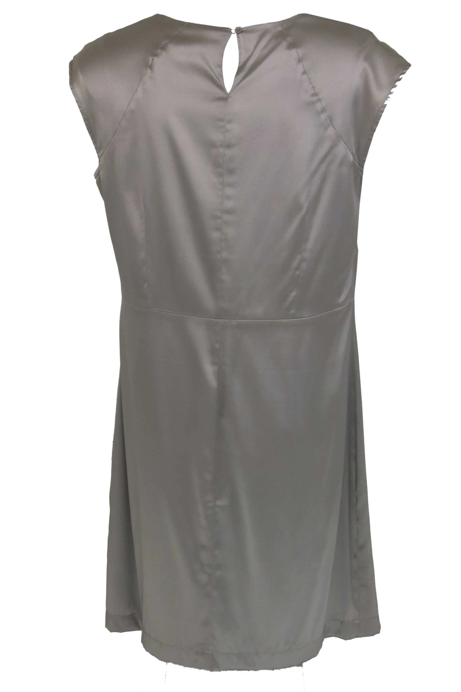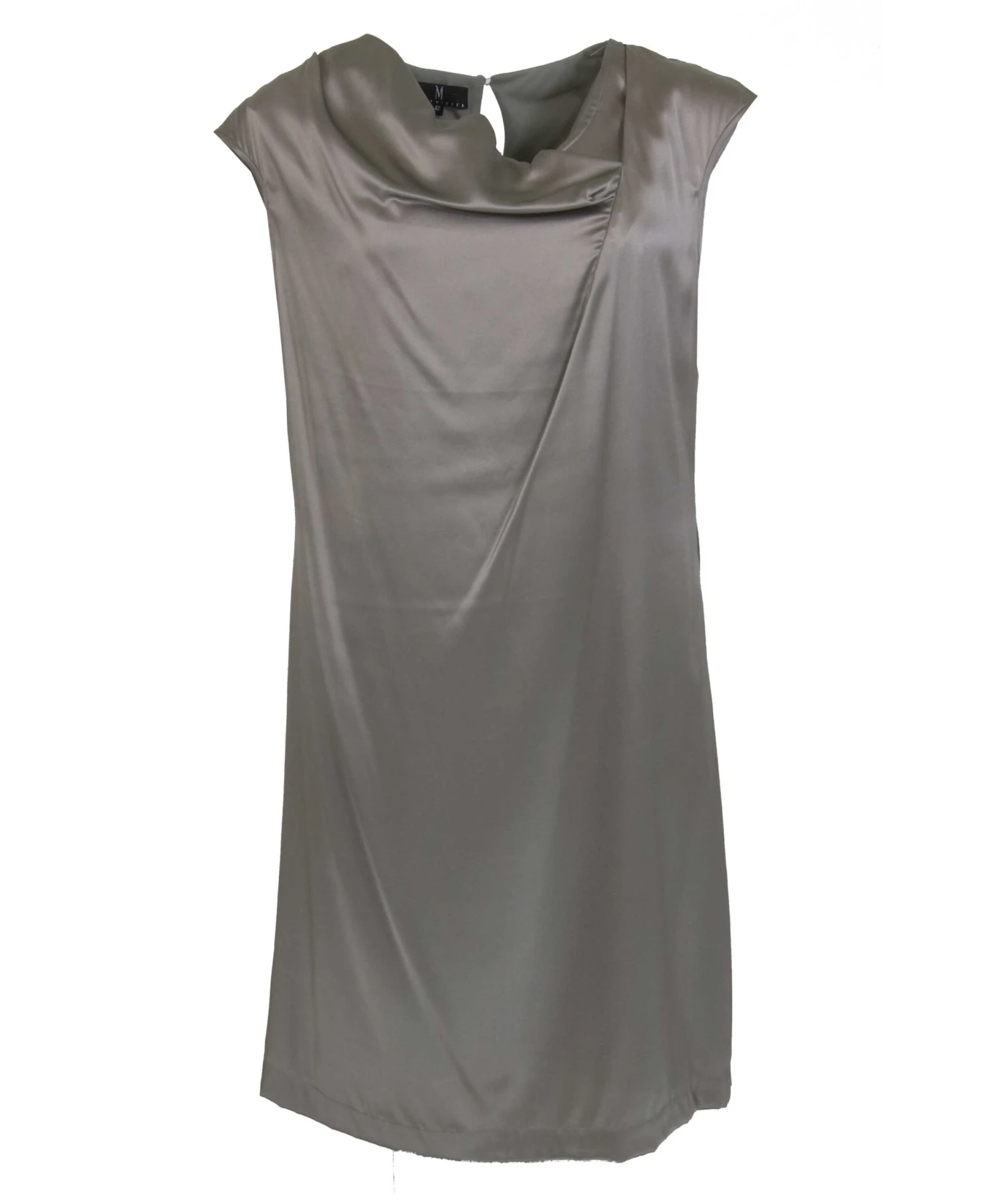 Een mat satijnen jurk van Mart visser in de kleur grijs. De jurk heeft een vallende hals en is gevoerd. deze jurk mag niet worden gewassen.