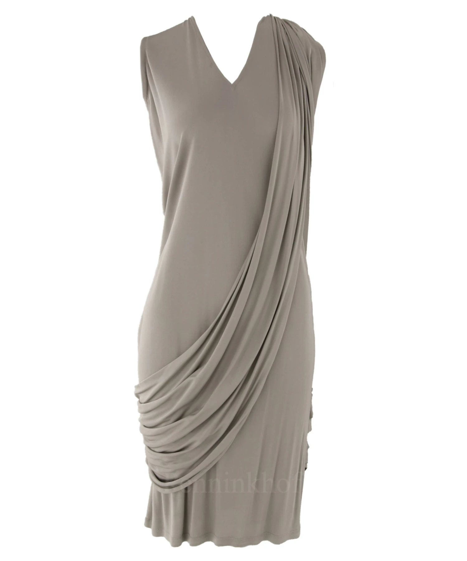 Een tuniek van Mart Visser in een mat glanzende grijze kleur. Het tuniek heeft een ronde hals. Vanuit de schouders is een fijn geplooide stof in een overslag. Dit tuniek mag op 40 graden worden gewassen.