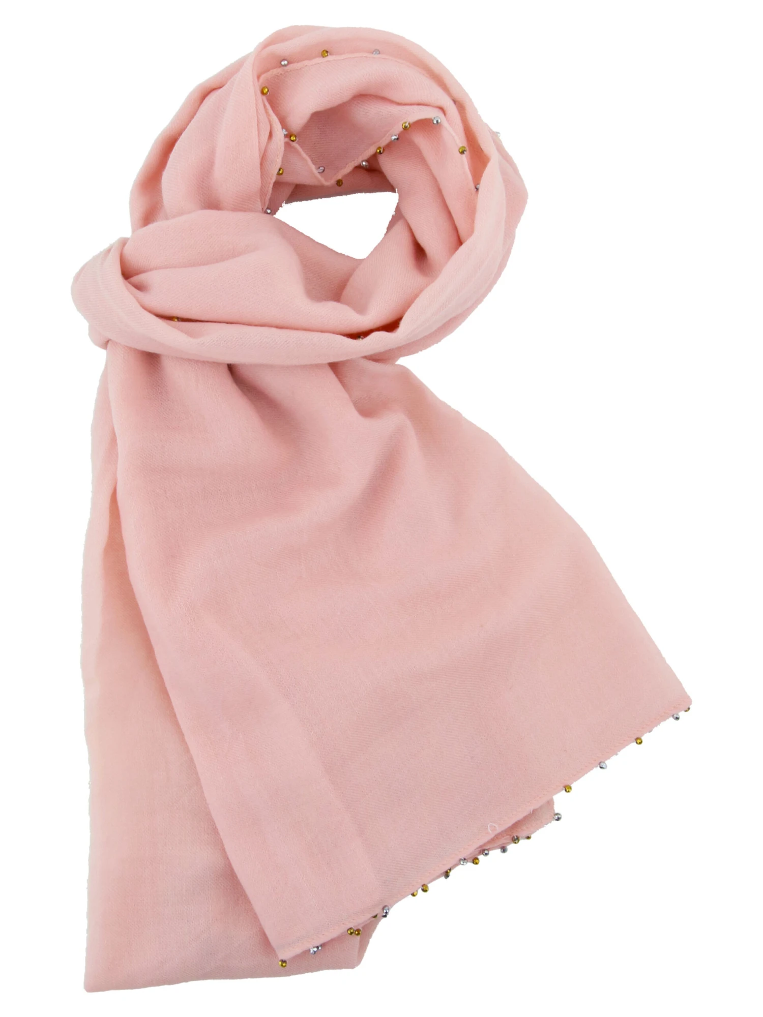 Een uni shawl van het merk Stroke in de kleur rose. Langs de randen van de shawl zijn kleine stras steentjes. deze shawl mag niet worden gewassen.